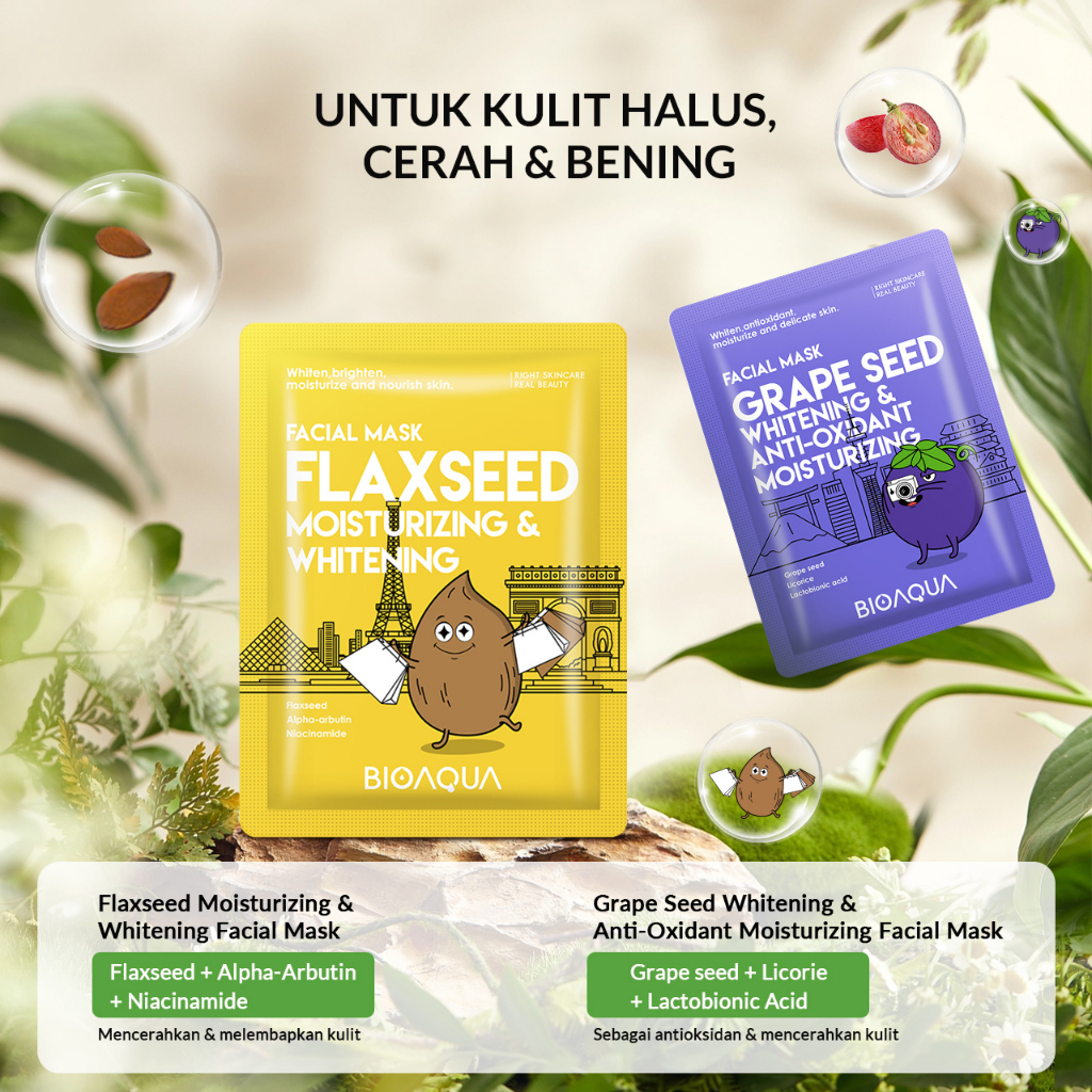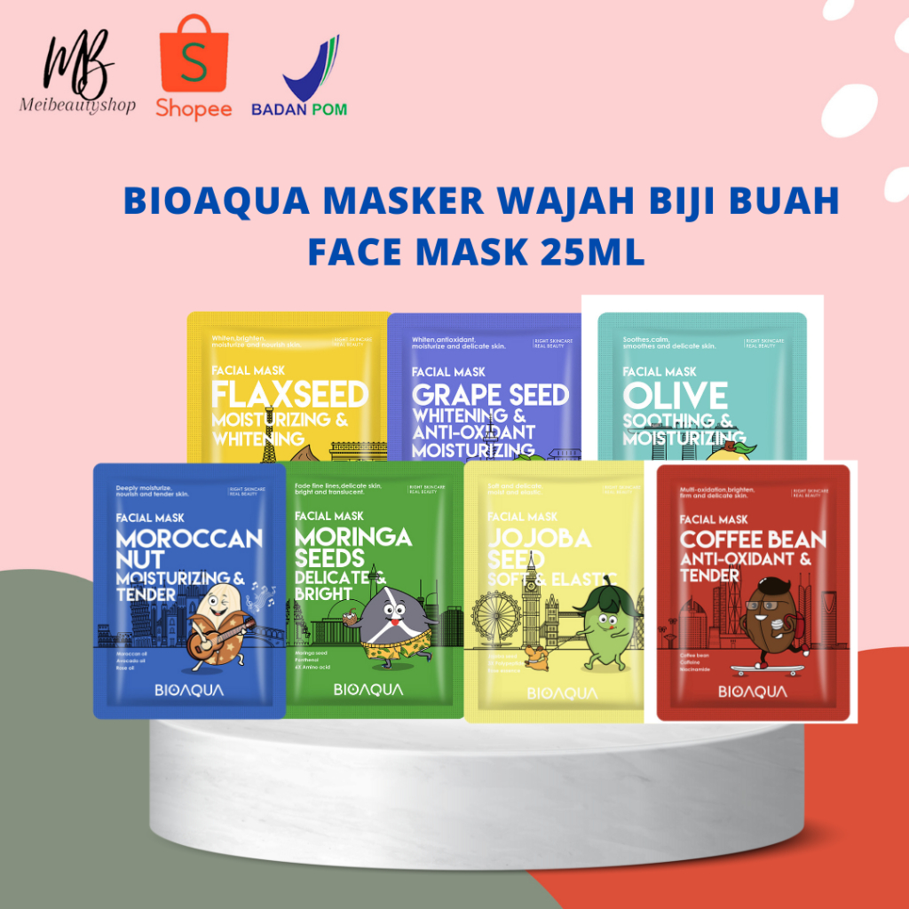 Detail BIOAQUA Sheet Mask Masker Wajah Biji Buah Face Mask 25ml Grape Seed Whitening/Olive Soothing/Jojoba Seed Soft/Moroccan Nut