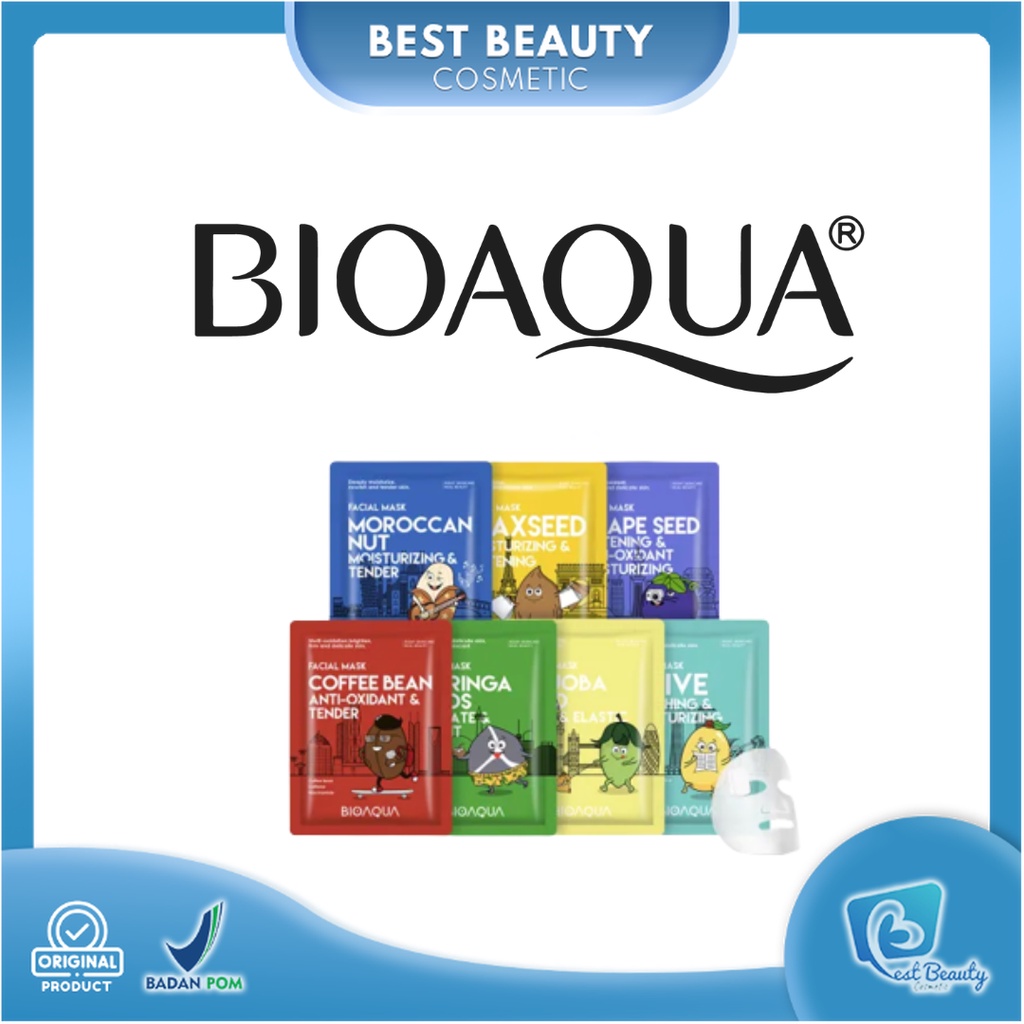 BIOAQUA Sheet Mask Masker Wajah Biji Buah Face Mask 25ml Grape Seed Whitening/Olive Soothing/Jojoba Seed Soft/Moroccan Nut Moisturizing/Coffee Bean Anti-Oxidant Masker Muka Masker Organik Original 100% Ada No.BPOM di kemasan