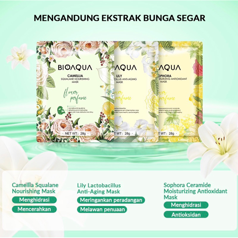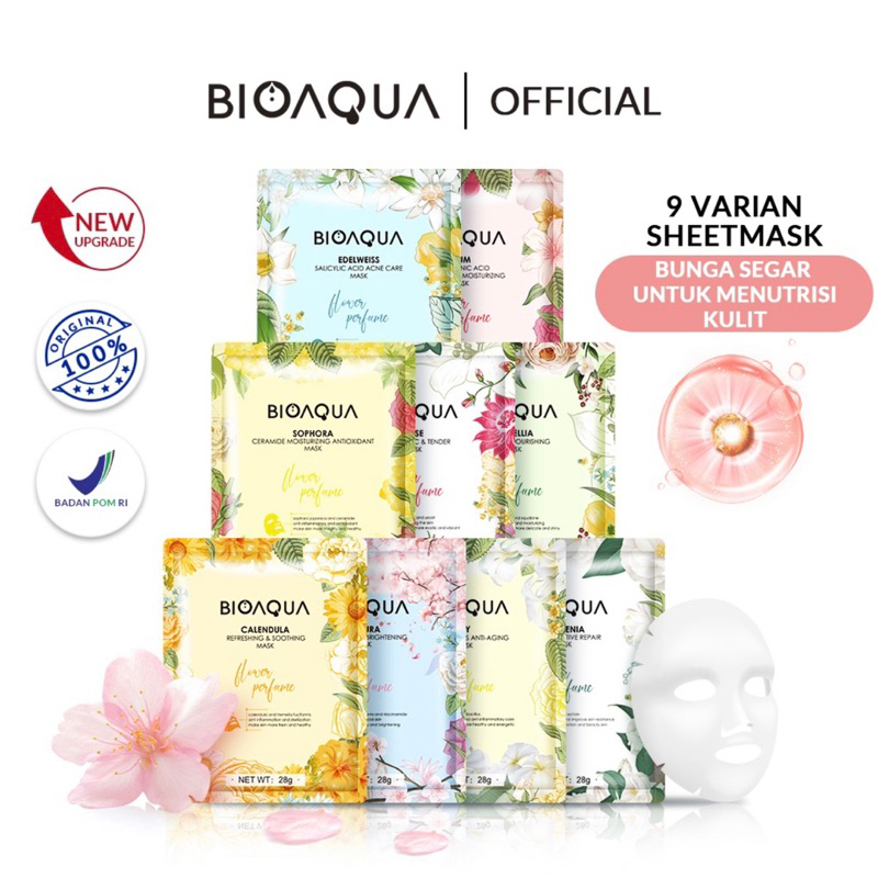 Detail Bioaqua Sheet Mask Masker Wajah Flowers Series (28gr/pcs) Hydrating Essence Face Mask Brightening dan Anti Acne