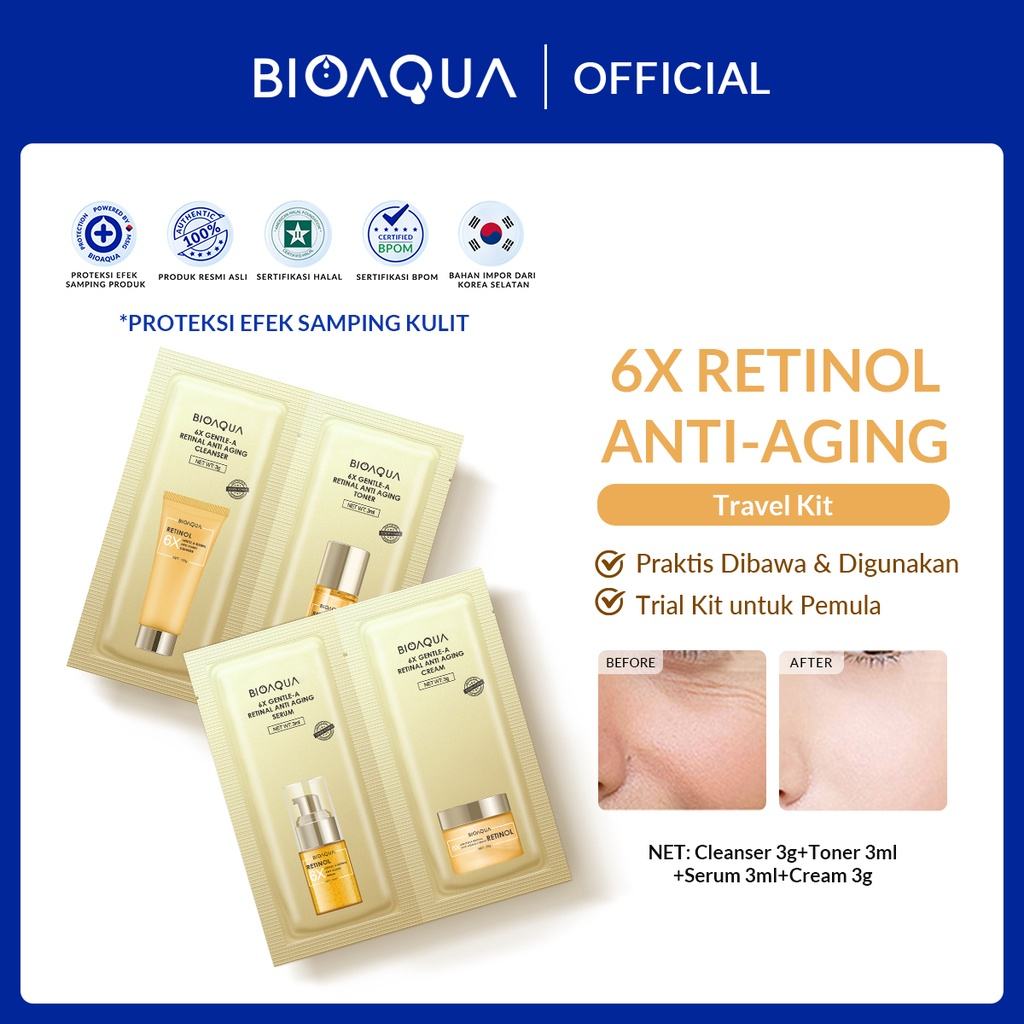 6X Retinol Anti-Aging Travel Kit -Samarkan Kerutan & Mengencangkan Kulit -Antioksidan dan mencerahkan -Melembapkan dan melembutkan