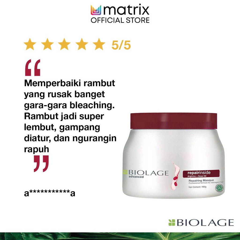 Biolage Repairinside Mask adalah produk perawatan rambut profesional untuk perawatan rambut sangat rusak karena rapuh, bercabang, dan pernah di-bleaching.