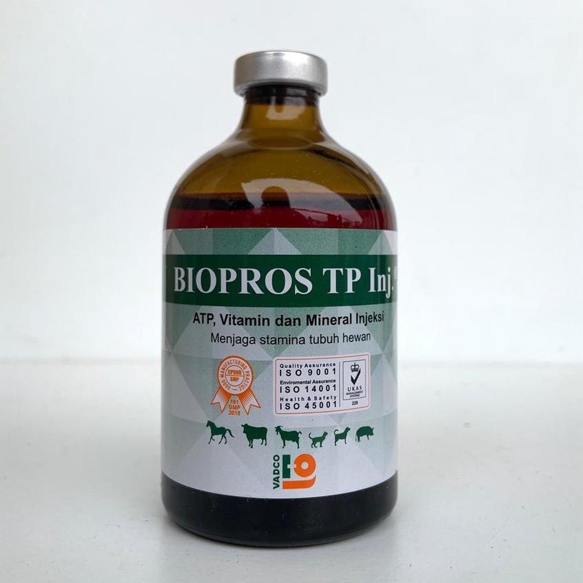 Biopros Tp Inj - Vitamin dan Tenaga untuk Sapi Anda merupakan inj energi siap pakai. Adenosine Triphospate (ATP) yang dikandung dalam Biopros Tp Inj. Akan menjaga dan mengembalikan stamina tubuh hewan, serta menguatkan otot yang lemah akibat transportasi, melahirkan, kerja keras, kekurangan makan, infeksi penyakit dan lain-lain.
