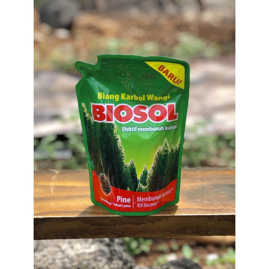 Biosol Pouch adalah karbol ekstra wangi yang efektif membunuh kuman, membersihkan lantai, manjadikan ruangan harum dan segar lebih lama. Dapat membunuh kuman - kuman hingga 99 persen dan memiliki aroma pohon pinus yang menyegarkan. Bisa digunakan menhilangkan bau kamar mandi yang kurang sedap, WC, got, bak sampah, kandang binatang.
