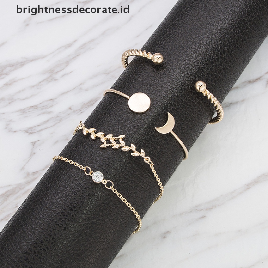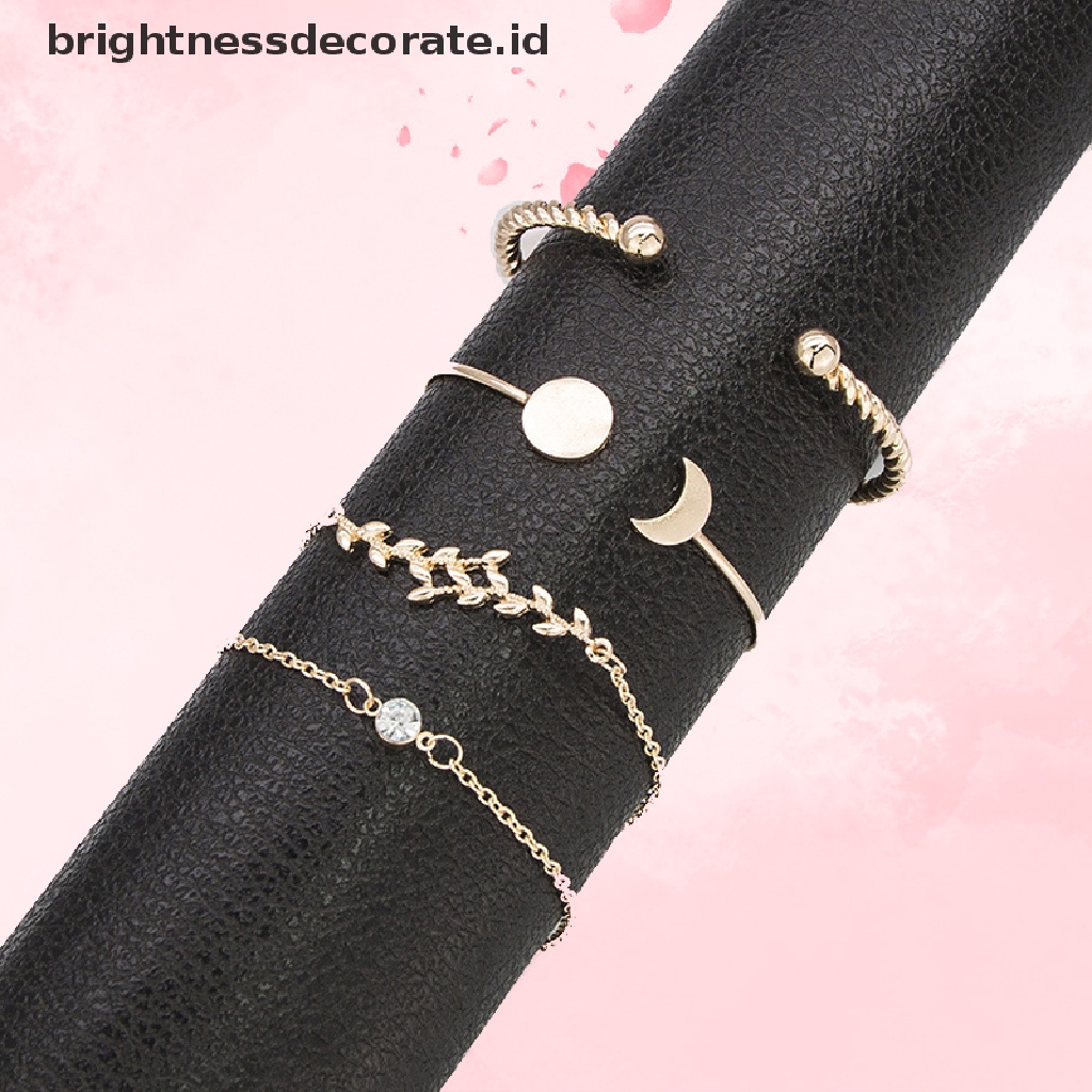 Detail [Birth] 4pcs/set Wanita Bohemian Gelang Kristal Daun Bulan Handmade Alloy Bangle Jewelry [ID]