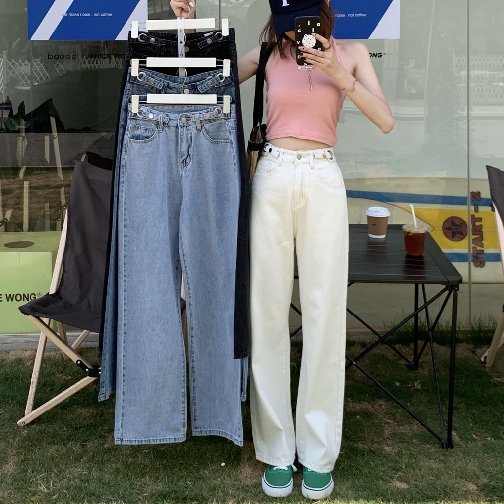 Detail Biru/Hitam/Krem new high waist celana jeans panjang wanita kekinian terbaru cewek