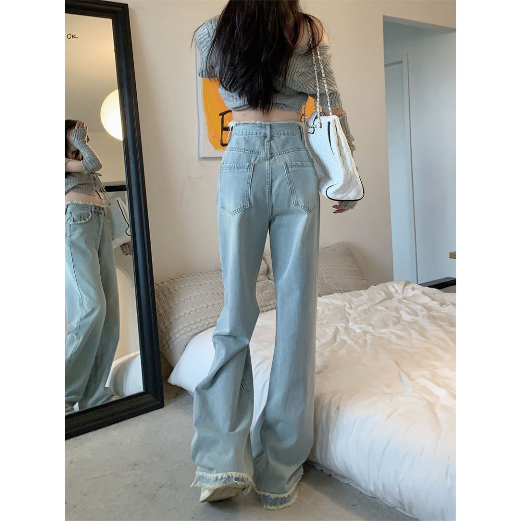 Detail Biru muda new high waist celana jeans panjang wanita kulot