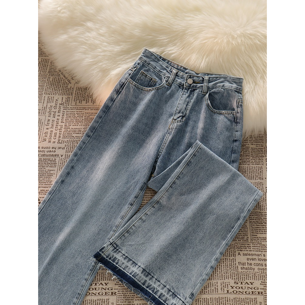 Detail Biru muda Rawis Denim Highwaist Loose Celana Jeans Wanita korea