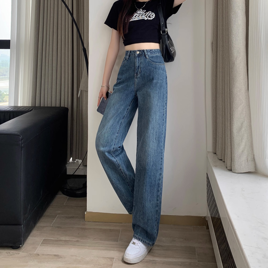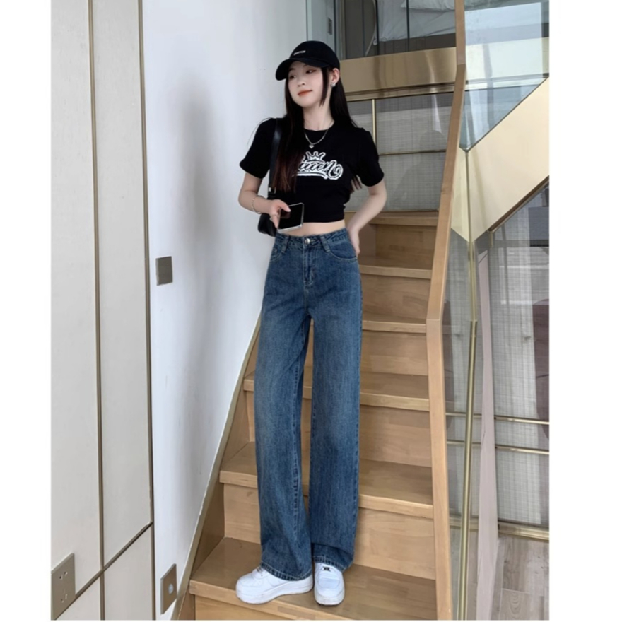 Detail Biru Retro Highwaist Terbaru Boyfriend Celana Jeans Panjang Wanita Kulot