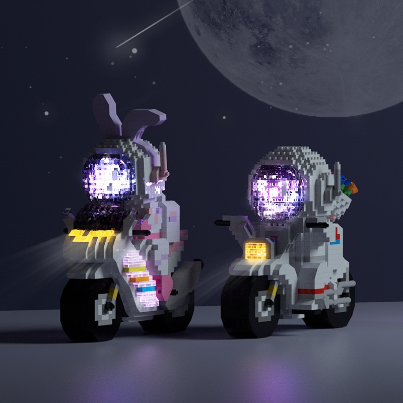 Detail (Bisa Bersinar)Mainan Balok Susun Model Sepeda Motor Mainan Anak Perempuan Nano Block