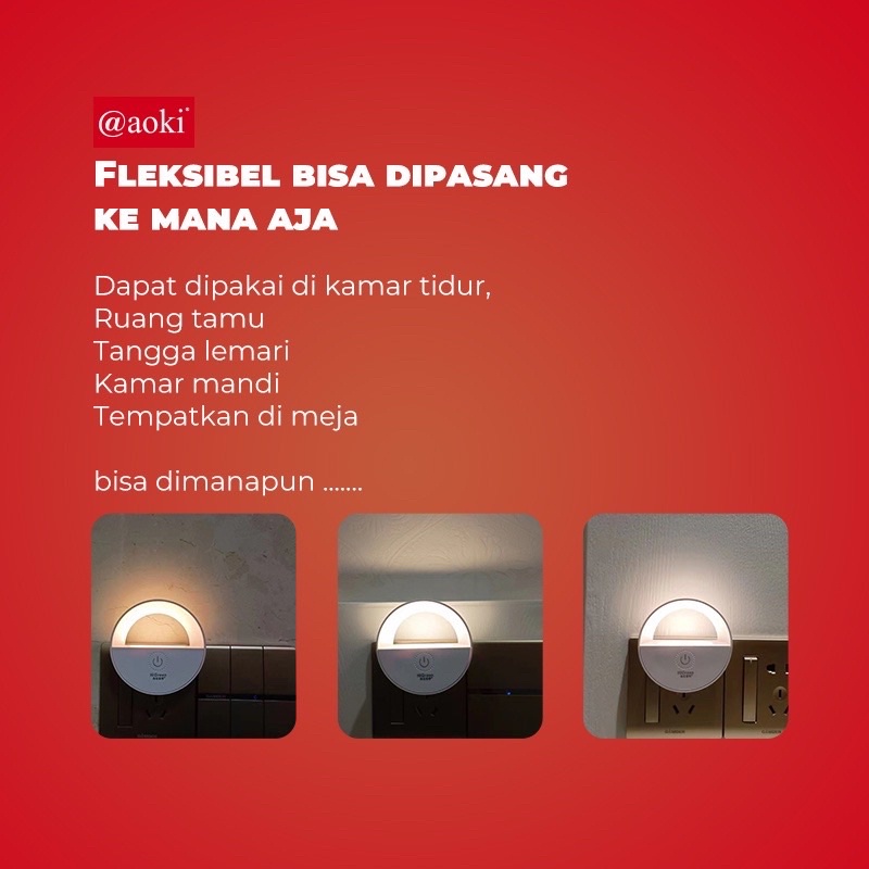 Elektronik > Lampu > Lampu Tidur > Bisa COD - AOKI Lampu Tidur Sentuh Led 1 Watt AK-YD02 - Led Dinding Night Lamp Sleep Lamp Kamar Asrama Studio Lemari Pakaian Lorong Tangga Hemat energy