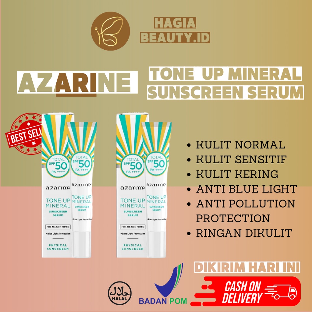 Bisa COD - AZARINE Tone Up Mineral Sunscreen Serum SPF 50 PA++++ (27ml)Bisa COD - AZARINE Tone Up Mineral Sunscreen Serum SPF 50 PA++++ (27ml)