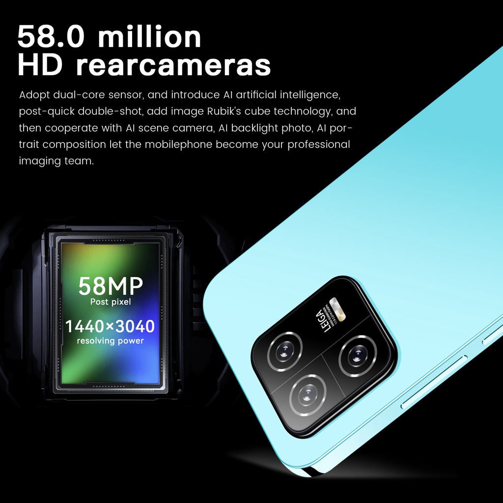 Deskripsi Produk Model: M13 Pro Platform: Android 11.0 4G / 5G LTE Siaga: Kartu ekspansi kartu TF vertikal dua lapis Layar: 7,5 inci Frekuensi: GSM: 800/900/1800/1900, WCDMA: 850/2100 Warna: Hitam,Biru, Putih Memori: RAM 12GB + ROM 512GB Kamera: 24MP + 58MP Resolusi:1440*3040 Multifungsi: pengenalan wajah, wifi mode tunggal, GPS, sensor gravitasi, jam alarm, kalender, kalkulator, perekam audio, perekam video, wap/mms/gprs/, penampil gambar, tugas e-book, sampul IML Bahasa: Dukungan multi-bahasa Baterai: Baterai lithium-ion 6800mAh
