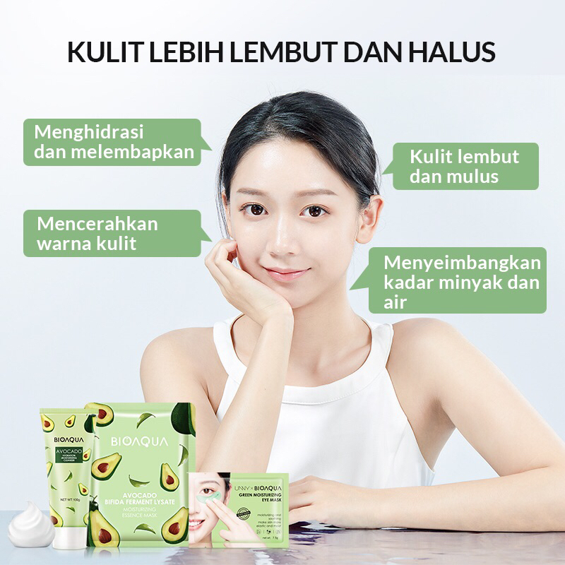 Skincare Set dari Bioaqua dengan kandungan Avocado & Milk! 🥑🥛 ✨ Menjaga kulit tetap sehat dan kencang ✨ Kulit cerah dan lembap ✨ Kulit lebih lembut dan halus ✨ Menghidrasi dan melembapkan ✨ Membersihkan pori-pori secara mendalam ✨ Menghilangkan kotoran dan minyak ✨ Memperbaiki kulit kasar ✨ Membersihkan tanpa membuat kulit terasa kaku