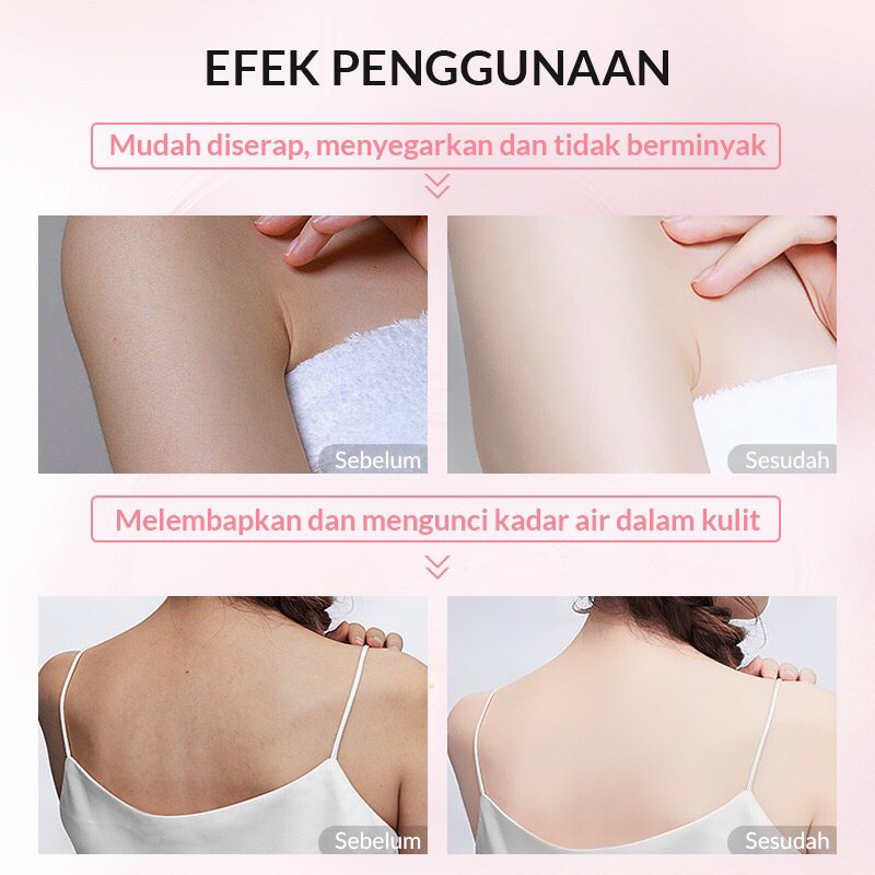 NIKMATI KULIT HALUS DAN MULUS MULUS -Melembapkan dan menghilangkan keriput -Kulit halus dan bercahaya -Segar dan tidak lengket