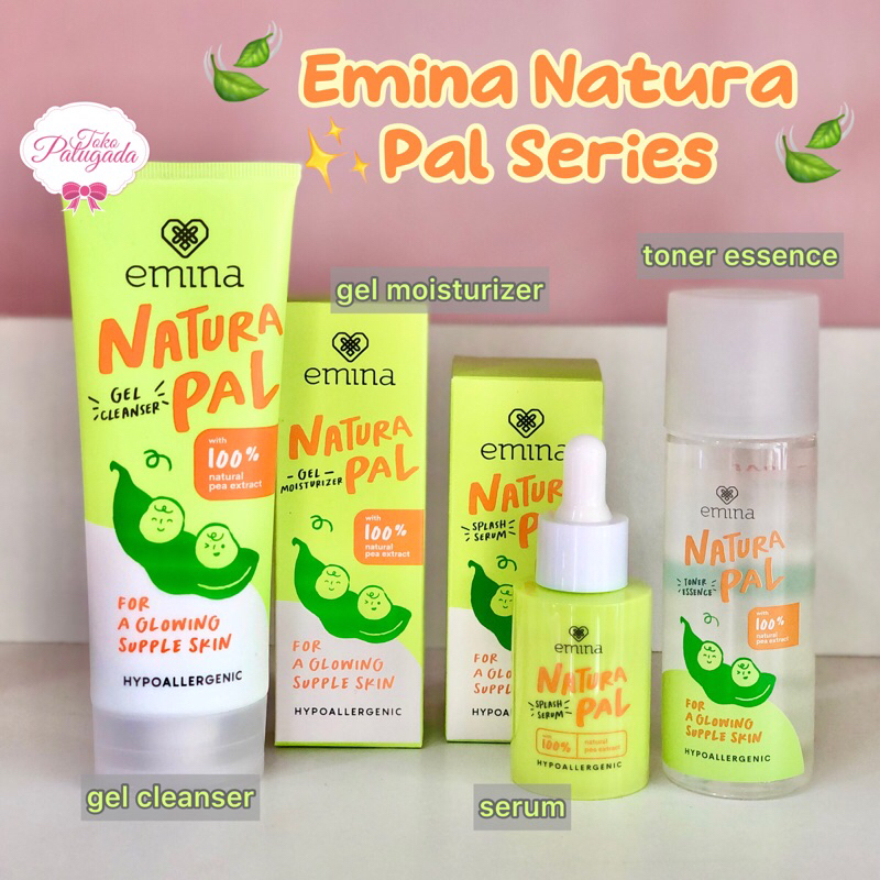 Emina Natura Pal Series terdiri dari Natura Pal Gel Cleansear 100ml Natura Pal Gel Moisturizer 20ml Natura Pal Splash Serum 40ml Natura Pal Toner Essence 100ml