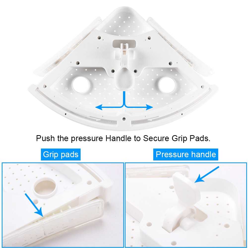 Rak gantung ini memiliki bentuk 1/4 lingkaran yang dapat diletakkan pada bagian sudut dinding kamar mandi, sehingga Anda dapat menaruh perlengkapan mandi seperti sabun, sampo, sabun wajah, dan sebagainya. Dengan menggunakan rak gantungan ini, kamar mandi Anda bisa terlihat lebih rapi dan tertata. Fitur Mudah Dipasang Rak ini sangat mudah untuk dipasang. Anda tidak membutuhkan bor atau palu dan paku untuk memasangnya. Anda sudah disediakan lapisan karet polymer suction cup atau karet hisap. Anda tinggal memasang karet pada sisi rak, lalu dorong tuas pada bagian bawah rak. Material Berkualitas Rak gantung ini terbuat dari material plastik ABS berkualitas yang dijamin awet, kuat dan tahan lama untuk penggunaan jangka panjang. Desain Sederhana Rak gantung ini memiliki desain yang sederhana karena mengutamakan fungsinya untuk menempatkan peralatan kamar mandi. Balutan warna putih membuat rak ini sangat cocok untuk berbagai tema dekorasi.