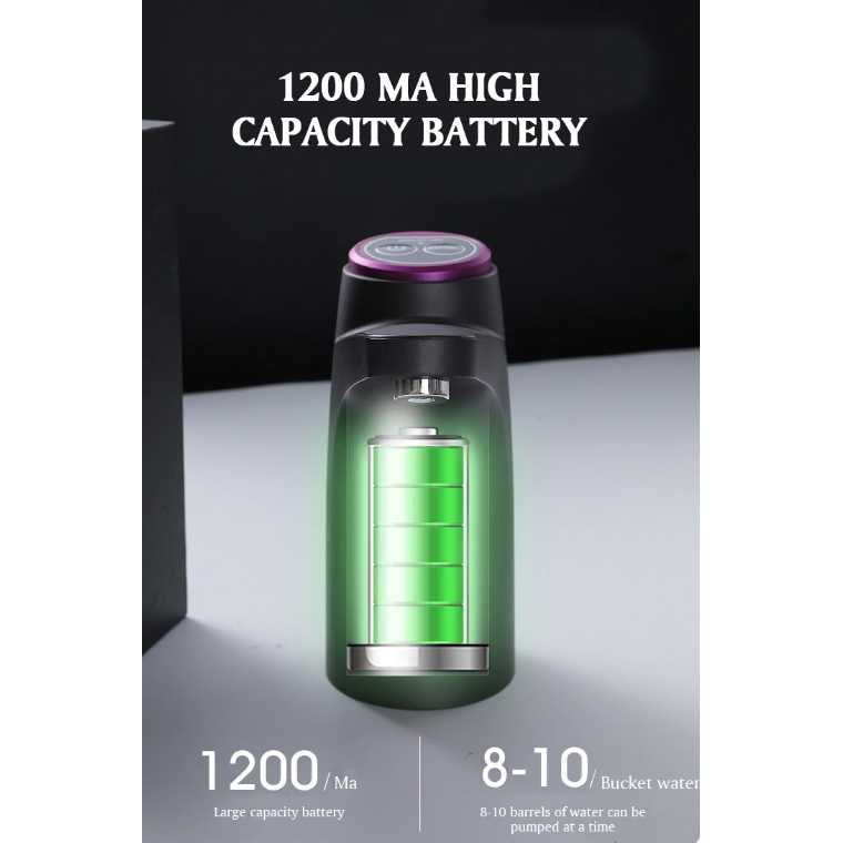 Pompa air minum elektrik ini hadir dengan desain minimalis sehingga menghemat ruang dibandingkan dengan dispenser rumahan. Penggunaan yang mudah hanya dengan menekan tombol maka air akan otomatis mengalir keluar. Sangat praktis dan solusi murah bagi Anda yang tidak memiliki dispenser air minum galon. Fitur Mudah Digunakan Anda dapat memasang pompa langsung di mulut galon. Setelah itu, cukup tekan tombol power ataupun tombol 600 ml untuk mengeluarkan air. Bahan Silikon Food Grade Bagian selang air terbuat dari bahan silikon food grade sehingga tidak mengandung zat kimia berbahaya dan aman untuk bersentuhan dengan air minum Anda. Pada bagian bodi terbuat dari bahan material plastik berkualitas sehingga ringan dan awet untuk penggunaan jangka panjang. Pengisian Daya USB Pompa listrik air galon ini menggunakan baterai 1200 mAh yang dapat digunakan untuk memompa 4 galon air non stop. Untuk mengisi ulang baterai, Anda tinggal menghubungkan pompa ke charger menggunakan kabel micro USB yang tersedia. Kesesuaian Galon Pompa listrik air galon ini dapat digunakan untuk galon air berukuran 5, 10, 15dan 18.9 liter. Pastikan Anda membersihkan mulut galon sebelum memasang pompa ini.
