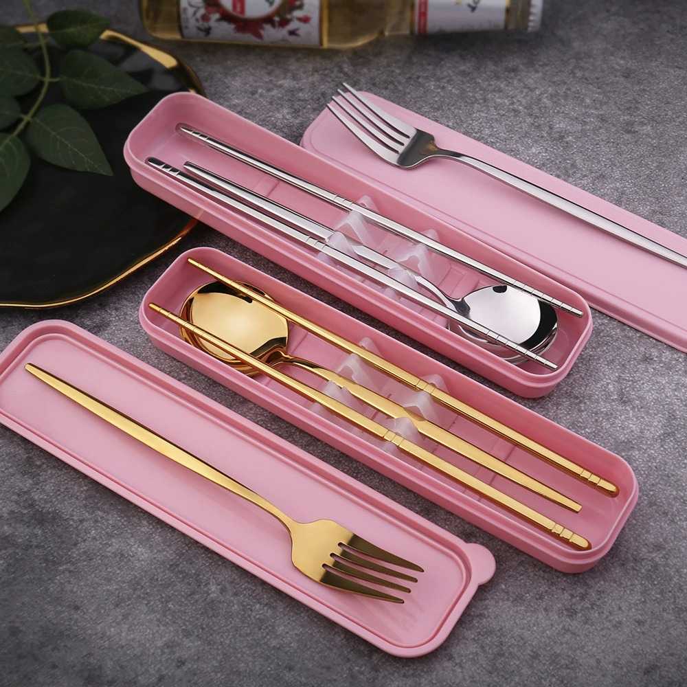 Detail (BISA COD) FTIHSHP TUUTH Set Perlengkapan Makan Sendok Garpu Sumpit Dinner Set with Box - A11