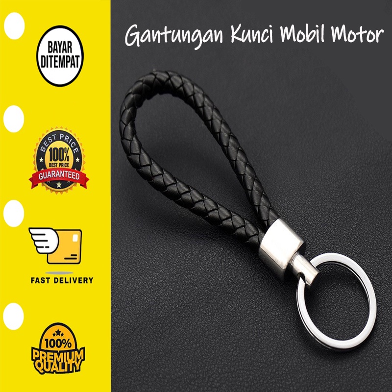 Tas Wanita > Aksesoris Tas > Hiasan & Gantungan Kunci > ✅ BISA COD Gantungan Kunci Rajut Kulit Sintetis Kepang Braided Jepang Hitam Mini Carabiner UNIK Motor Mobil Tas