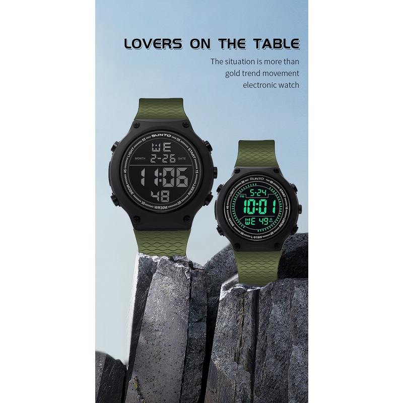 Brand : SUNTO Strab : RUBBER Mesin : Digital FITUR : Alarm , Stopwatch Tanggal Hari bulan Water Resistance 3ATM