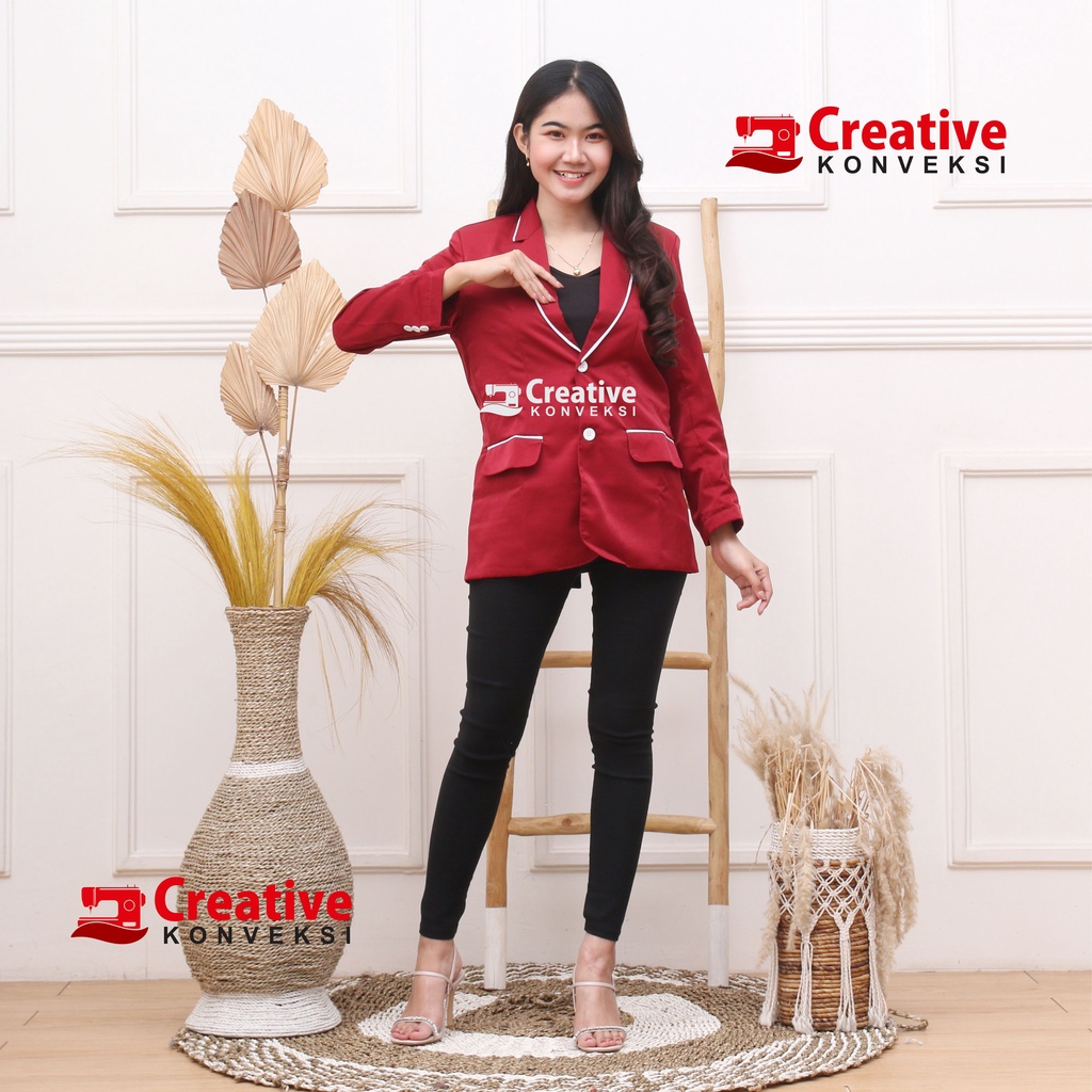 (BISA COD) jas almamater warna merah maroon variasi lis putih full furing / jas pondok pesantren / blazer sekolah kancing 2 (bisa tambah bordir nama)