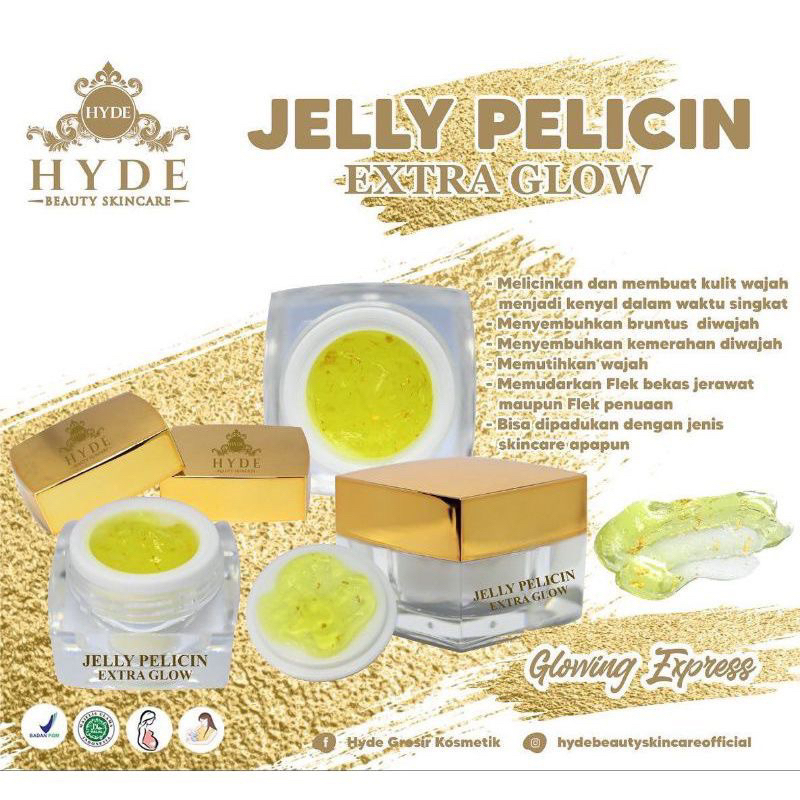 ✅Melicinkan dan membuat kulit wajah menjadi kenyal dalam waktu singkat. ✅Menyembuhkan bruntusan d wajah ✅Menyembuhkan kemerahan d wajah ✅Mencerah kan wajah ✅Memudarkan flek bekas jerawat maupun flek penuaan #Jelly pelicin Hyde ini bisa dipadukan dgn semua skincare..