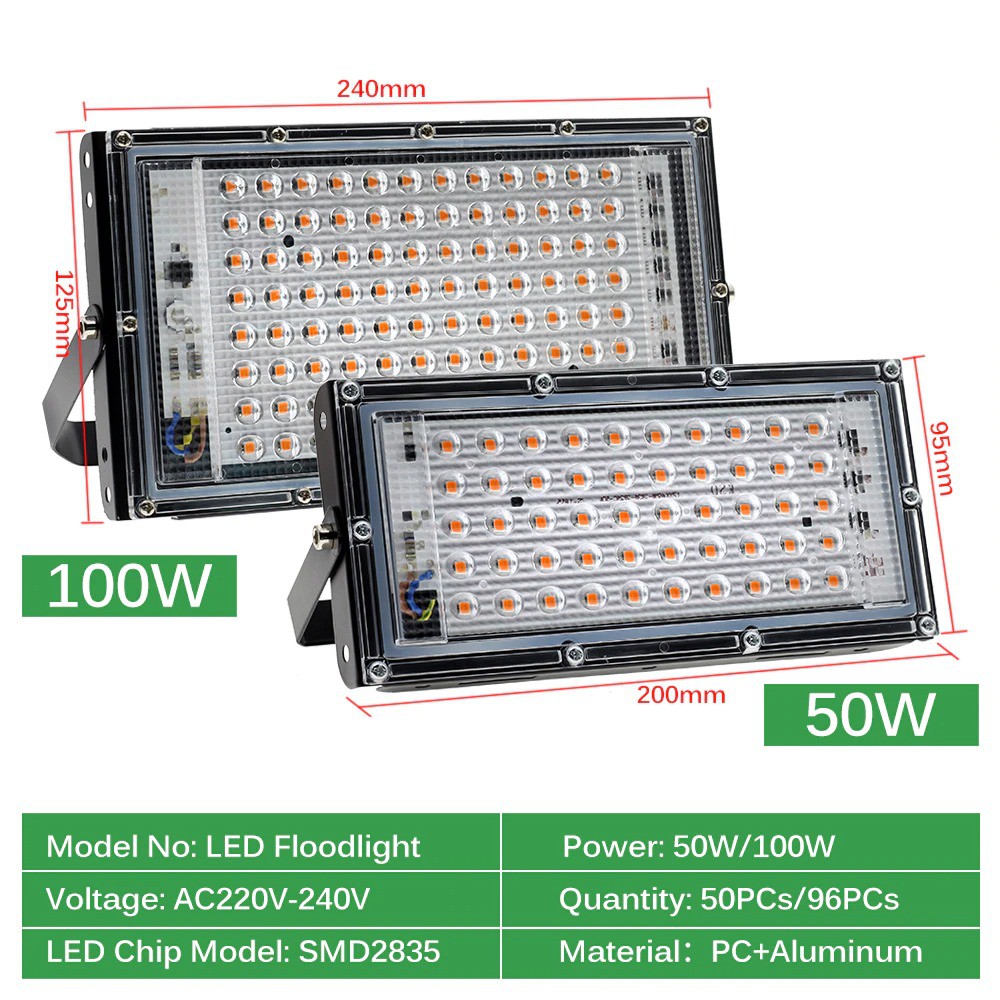 ED SMD2835 LEDs Qty: 50Pcs Power Supply Power: 50W Voltage AC220V Material PC+Aluminum Dimension 200 x 95 mm Others Waterproof Level: IP65