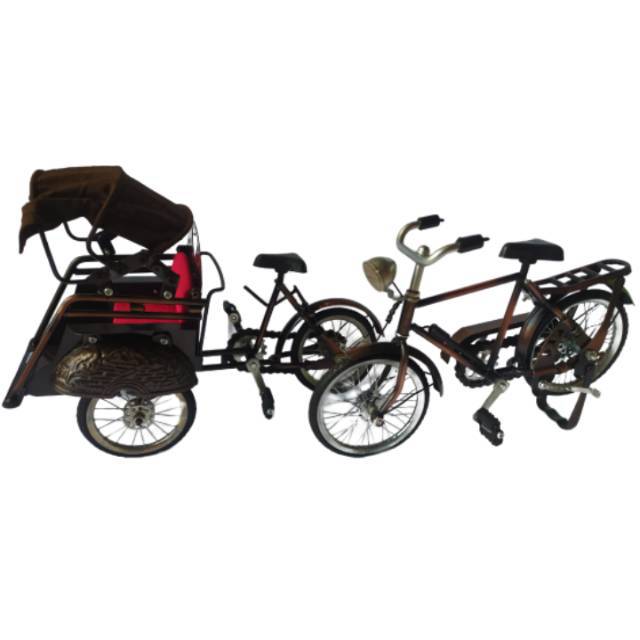Detail (BISA COD) PAKET HEMAT MINIATUR BECAK JAWA & SEPEDA ONTEL PRIA LOGAM DEKORASI RUMAH - SOUVENIR JOGJA
