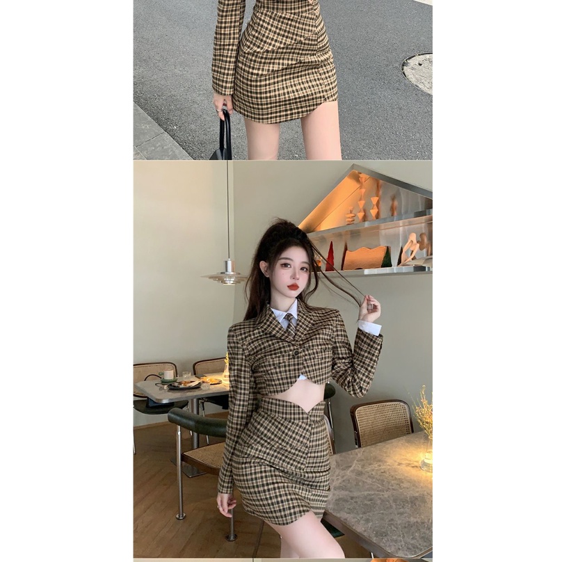 Pakaian Wanita > Batik > Set Wanita Batik > [✅BISA COD] Retro gaya perguruan tinggi setelan rok 2022 awal musim gugur baru kemeja kotak-kotak hot girl rok p