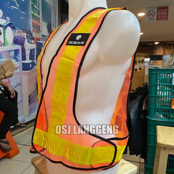 rompi proyek GOSAVE 4 line all size/ rompi pekerja 4 garis GOSAVE muat sampai xxl bahan polister ( tersedia warna hijau, dan orange )