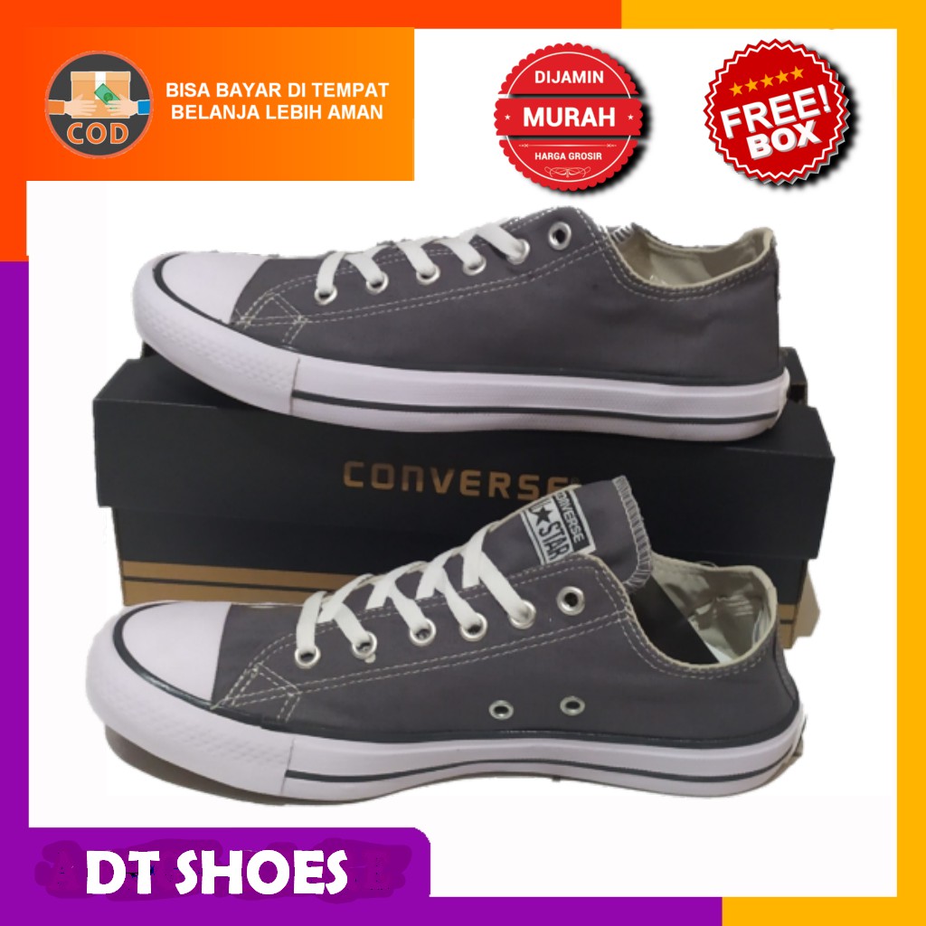 Detail BISA COD SEPATU CONVERSE LOW ALL STAR PENDEK PRIA WANITA ABU FREE BOX