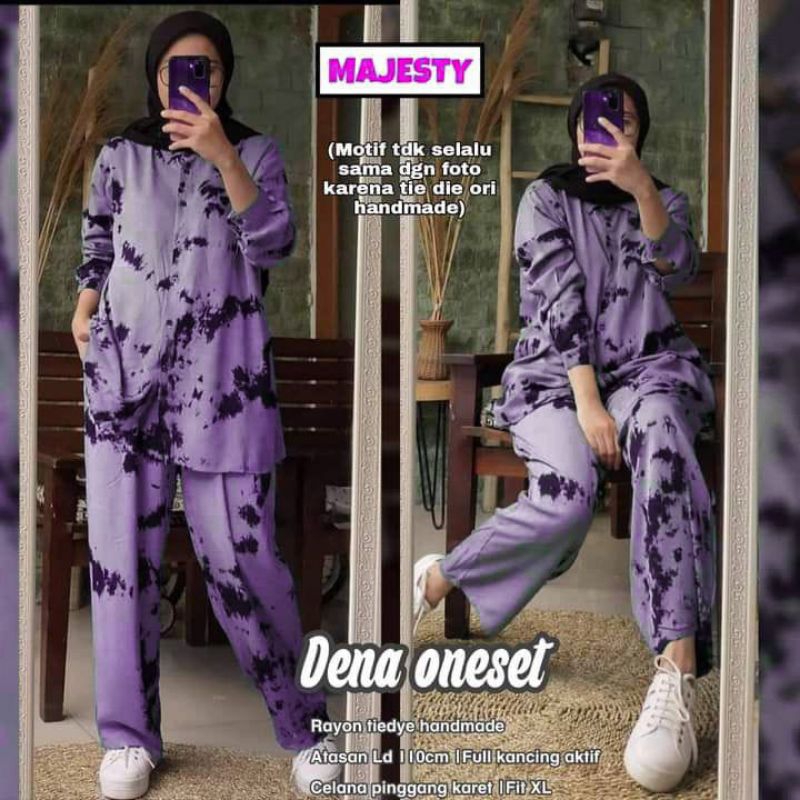 Tie Dye One Set Details : 🔹Bahan Rayon santung (adem & nyaman dipakai) 🔹Kancing Aktif 🔹Lengan Tangan Kancing 🔹Kerah Leher 🔹All size 🔹Details Atasan LD: -+ 108cm // PJ Atasan: -+ 70cm 🔹Details Celana PC : -+ 92Cm // LP: -+ 110cm // Lebar Paha: -+ 66cm.