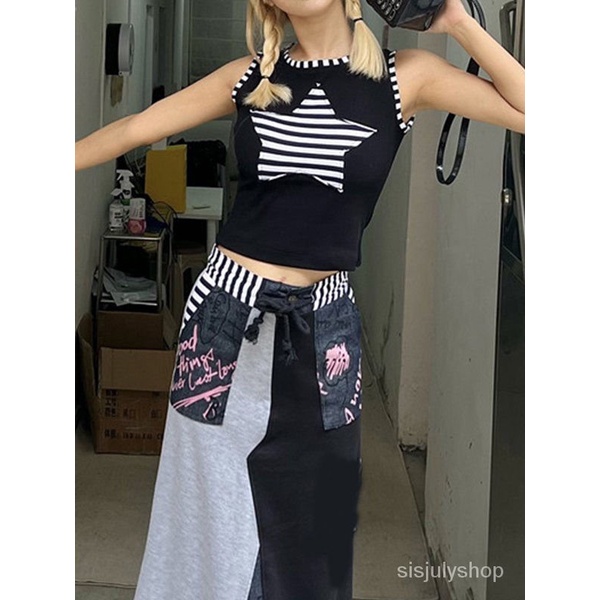 Detail [✅BISA COD] #Sisjuly# Atasan Y2K wanita / bagian pendek lengan pendek pas terbuka kaos wanita