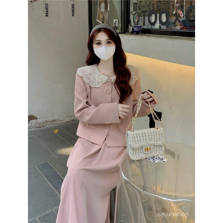 Pakaian Wanita > Pakaian Tradisional > Set Pakaian Tradisional > [✅BISA COD] #Sisjuly# Blazer renda renda gaya wangi kecil wanita lengan panjang blazer pinggang ting
