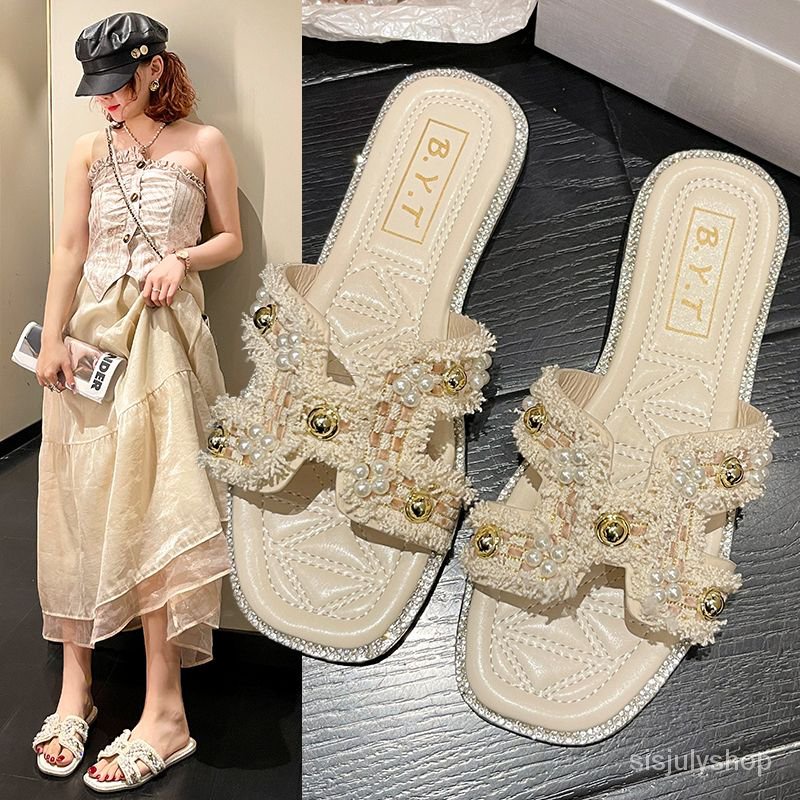 Sepatu Wanita > Sandal > Sandal Jepit & Sandal Lainnya > [✅BISA COD] #Sisjuly# Di luar memakai sandal wanita 2023 sepatu datar mode baru sepatu datar kata sa
