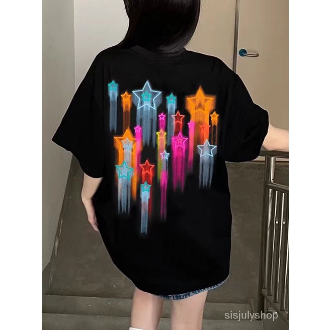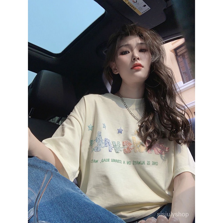 Detail [✅BISA COD] #Sisjuly# Kaos Aprikot Wanita / Atasan Katun Lengan Pendek / Motif Grafiti Baru Wanita