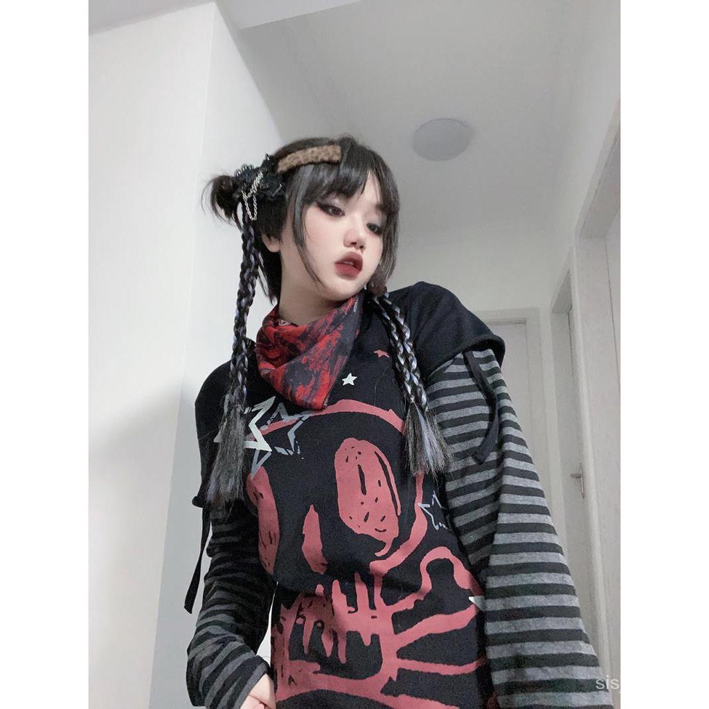 Detail [✅BISA COD] #Sisjuly# Kaos Lengan Panjang Y2K Wanita / Kaos Palsu Dua Potong Lengan Panjang / Atasan