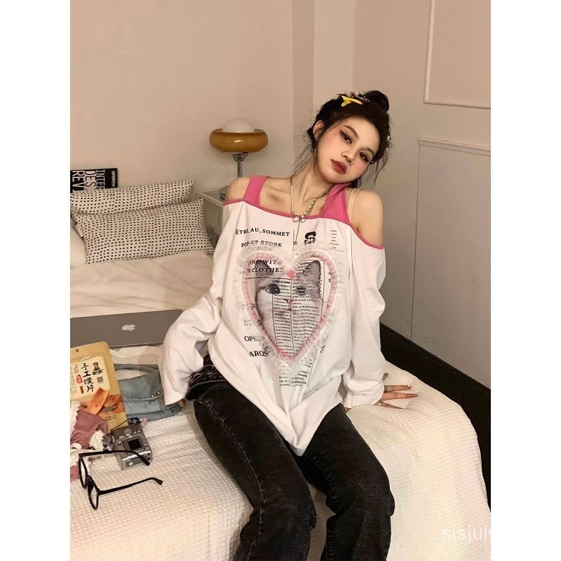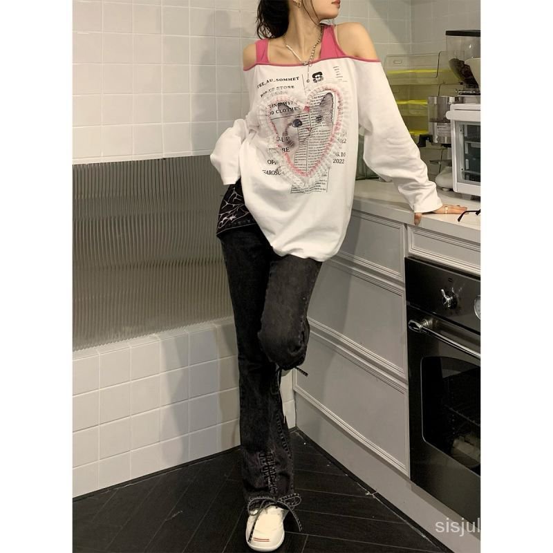 Detail [✅BISA COD] #Sisjuly# Kaos Lengan Panjang Wanita Y2K Lengan Panjang / Cinta Kucing Halter Satu Bahu