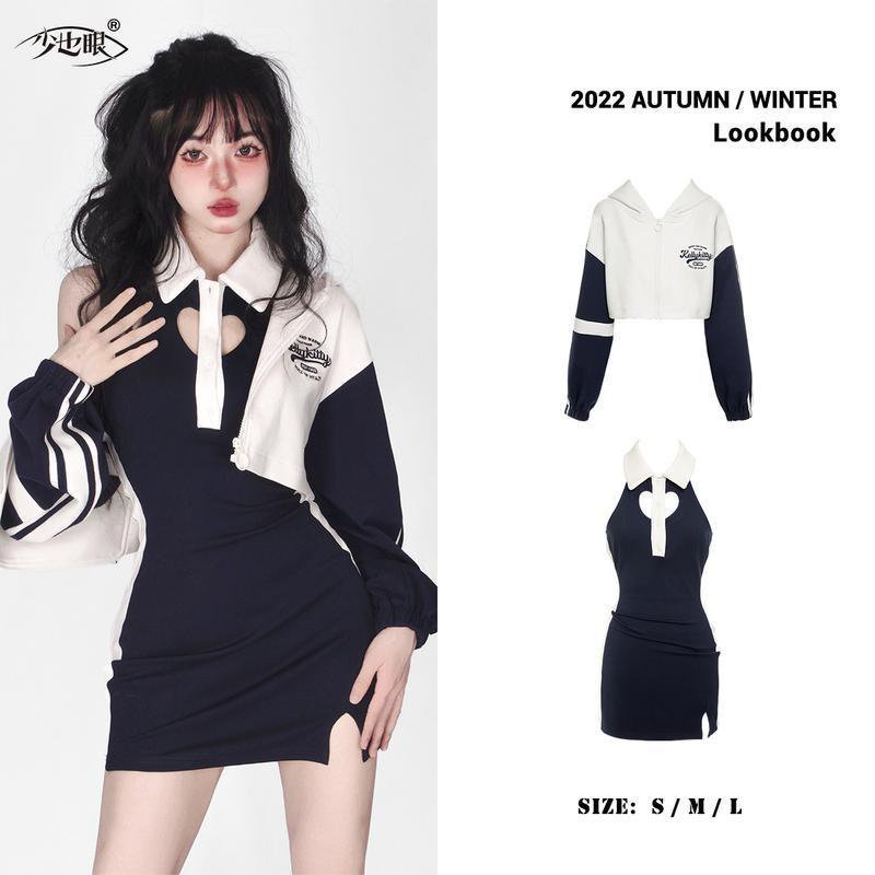 Detail [✅BISA COD] #Sisjuly# Rok lipit wanita / jaket pendek wanita / set pakaian olahraga kasual biru berk