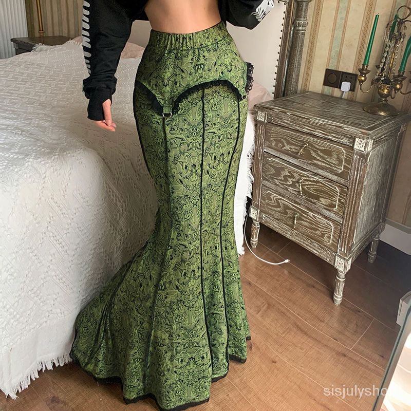 Detail [✅BISA COD] #Sisjuly# Rok setengah badan wanita / Rok panjang pertengahan jalan mode vintage / Rok s