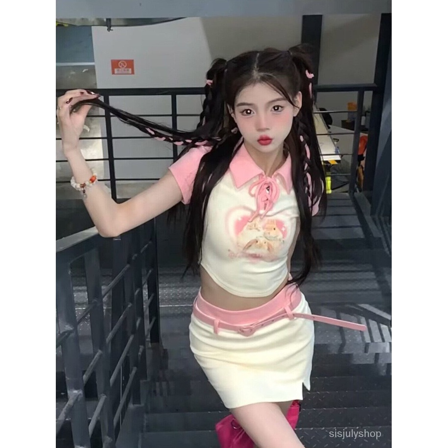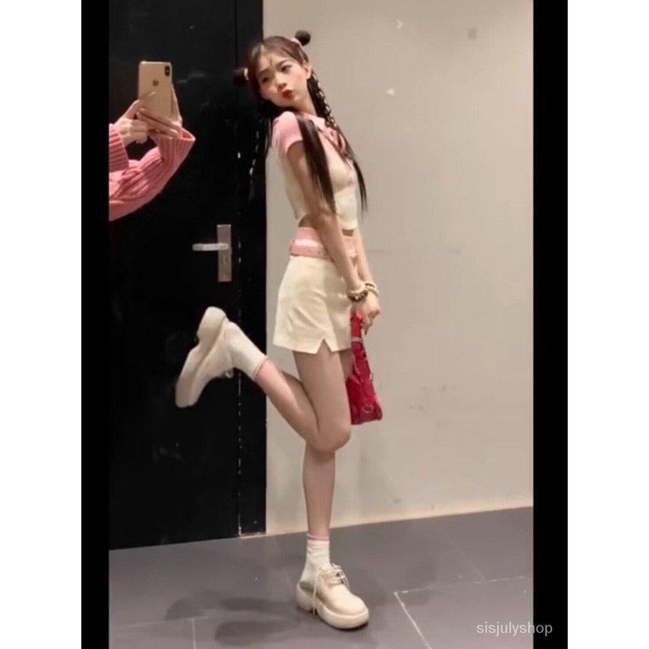 Detail [✅BISA COD] #Sisjuly# Setelan wanita / kaos lengan pendek kerah polo baru gaya perguruan tinggi wani