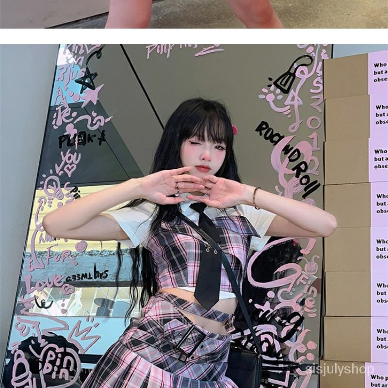 Pakaian Wanita > Pakaian Tradisional > Set Pakaian Tradisional > [✅BISA COD] #Sisjuly# Setelan Wanita / Rompi / Blus Pendek Ramping Kotak-kotak Hitam dan Ungu Jepang