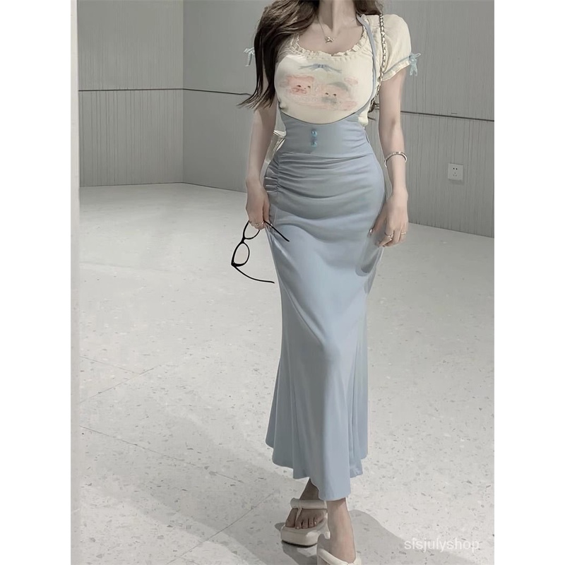 Pakaian Wanita > Pakaian Tradisional > Dress Tradisional > [✅BISA COD] #Sisjuly# Setelan Wanita / Atasan Lengan Pendek Bunga Baru + Leher Gantung Pinggul Tali