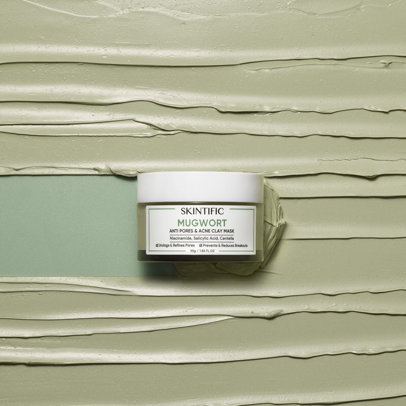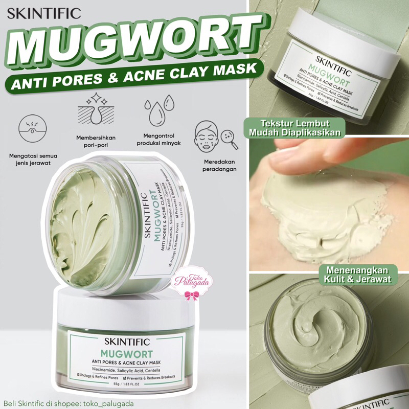 SKINTIFIC Mugwort Anti Pores & Acne Clay Mask Ukuran : 55Gr No BPOM : NA11210200181