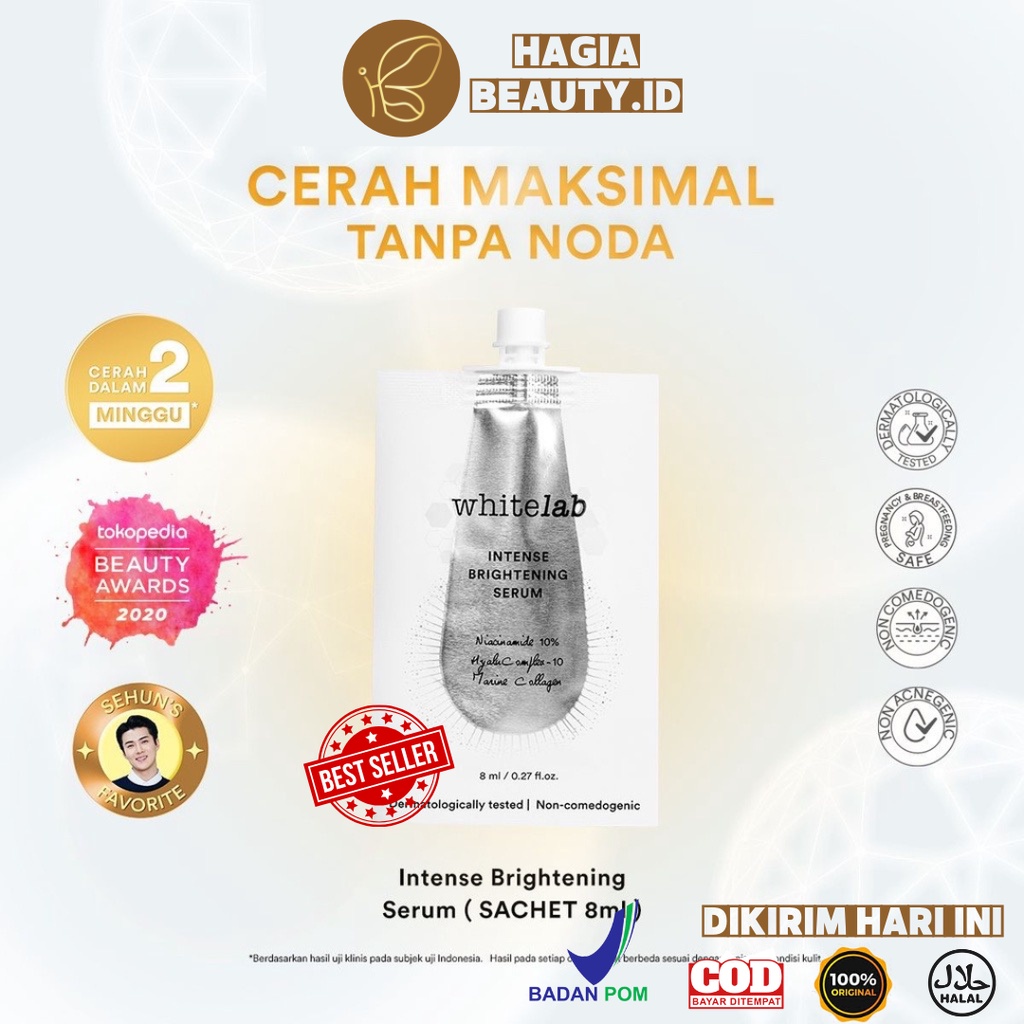 Whitelab Intense Brightening Serum dengan kandungan Niacinamide 10%, HyaluComplex-10, dan Marine Collagen bekerja sinergis mencerahkan dan menutrisi kulit membuat wajah tampak lebih cerah, lembab dan glowing alami.