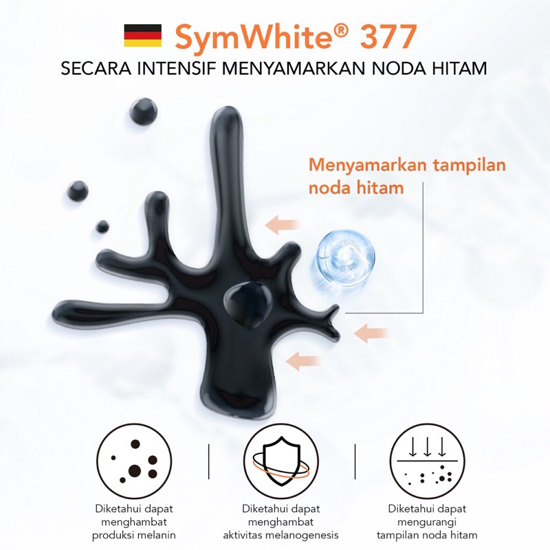 ✨ diperkaya dengan kandungan Symwhite 377, Ceramide 1-3-6, 3% Niacinamide, Vitamin C, dan Snow Mushroom Extract untuk memperkuat skin barrier kulit, mencerahkan, dan menjaga kelembapan kulit
