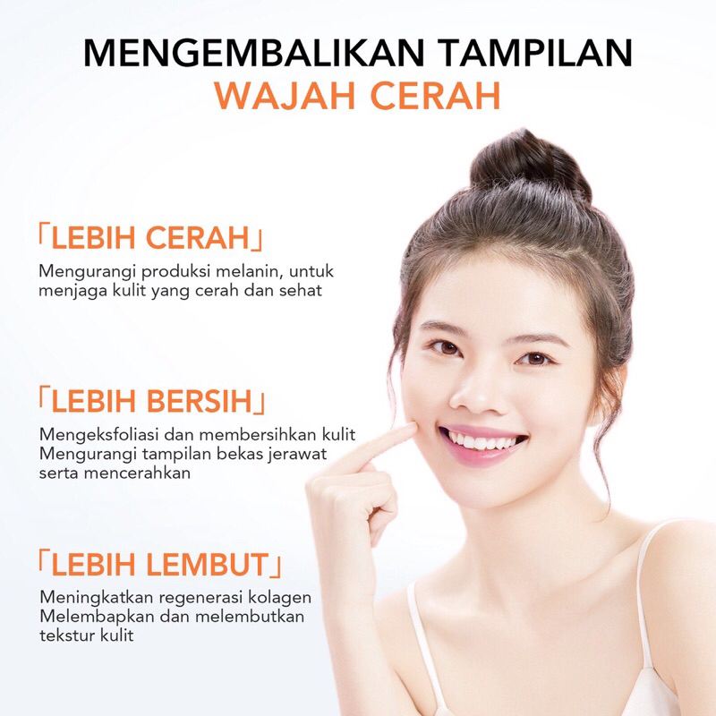 - POWERFUL BRIGHTENING SYSTEM SymWhite377, Niacinamide (B3), Vitamin C, dan Licorice Extract bekerja secara bersinergi dalam membantu mengurangi kulit kusam dan noda hitam untuk kulit yang cerah berseri.