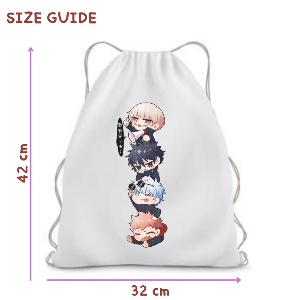 Detail BISA CUSTOM Stringbag JUJUTSU KAISEN Ransel Serut Tas drawstring Anime sekolah kampus olahraga