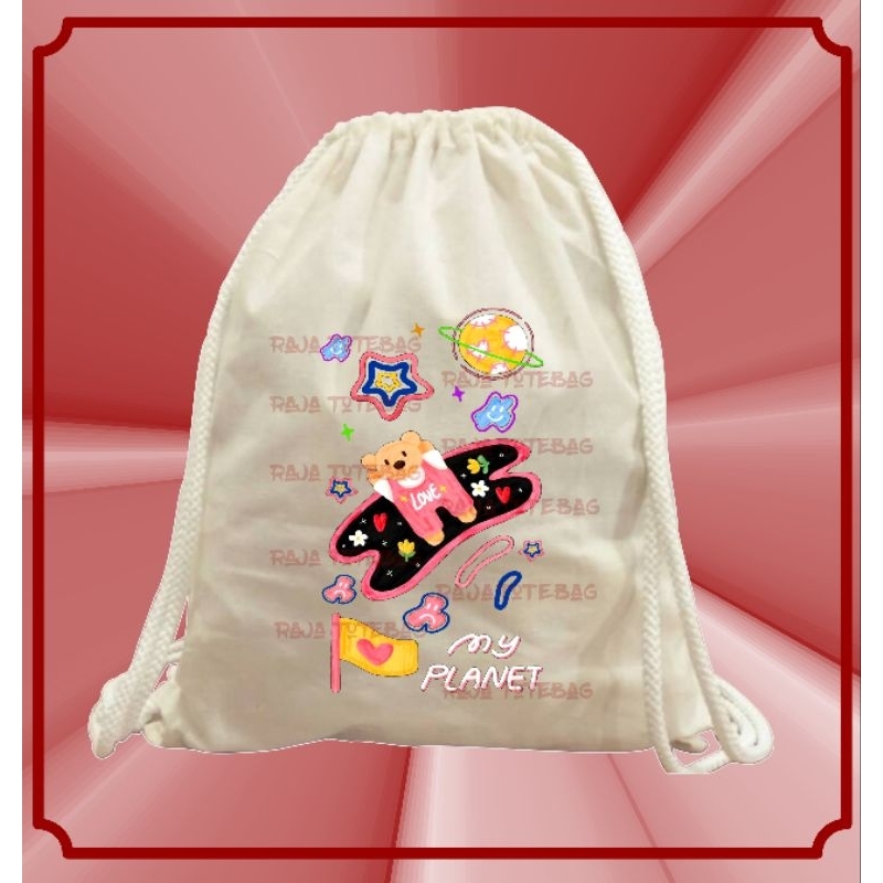 Detail (Bisa custom suka suka) tas serut tas string bag bahan kanvas broken