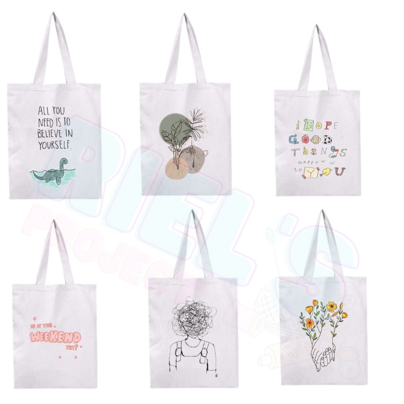 Tote bag muat banyak barang karena bahanya tidak kaku, bisa dilipat, mudah di cuci dan dibersihkan, simple dan ringan dibawa kemana saja. design by pinterest